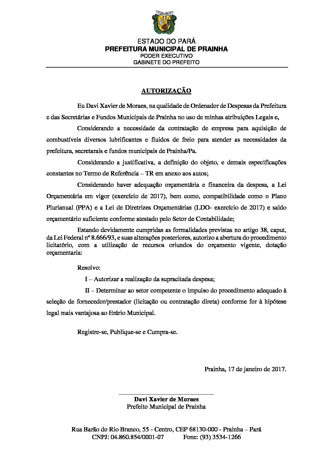 Autorização da Autoridade Competente